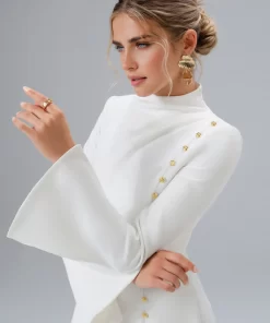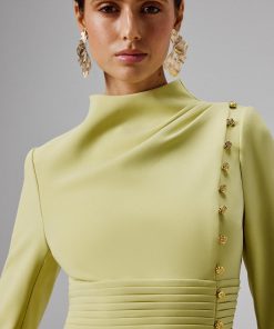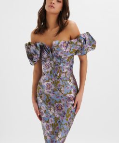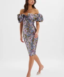 Lavish Alice Women’s Haley Micro Button And Loop Detail Volume Flared Midi Dress In Floral Broderie
