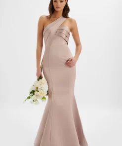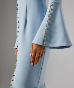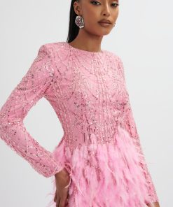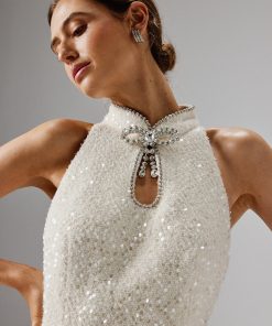 Lavish Alice Women’s Solene Sequin Boucle High Collar Mini Dress With Bow Embellishment In Beige