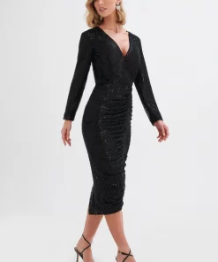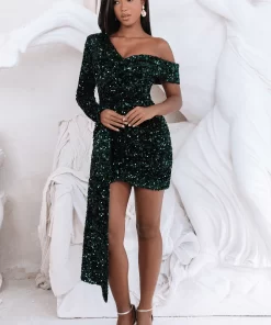 Lavish Alice Women’s Solene Sequin Boucle High Collar Mini Dress With Bow Embellishment In Black