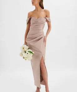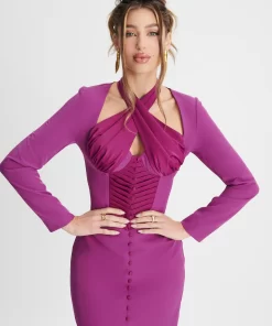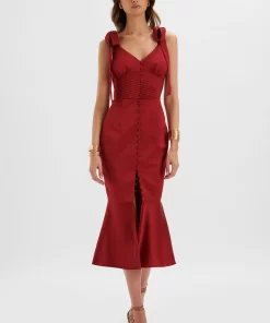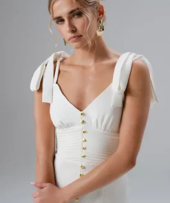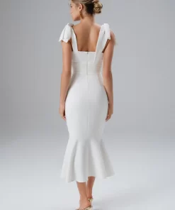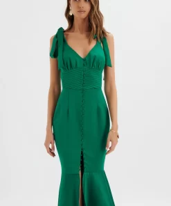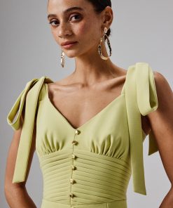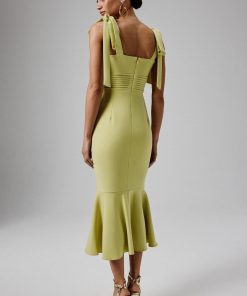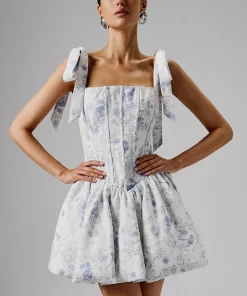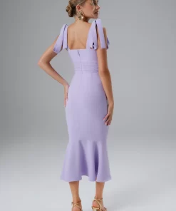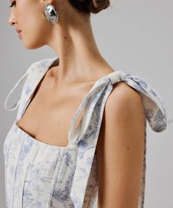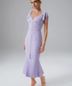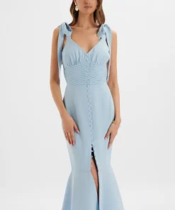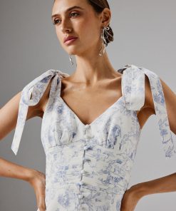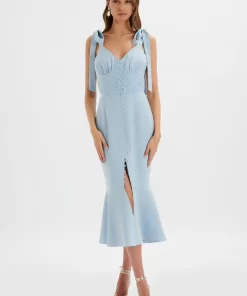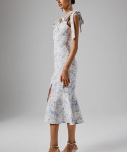Lavish Alice Women’s Kamila Tie Strap Micro Button Crepe Midi Dress In Blue Porcelain Print