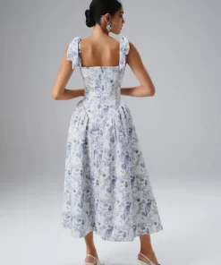 Step into effortless elegance with our BLOSSOM Tie Shoulder Corset Sundress in Blue Porcelain. Crafted from luxurious premium crepe, this chic and feminine piece is perfect for spring and summer occasions. Its timeless blue porcelain hue is complemented by a refined square neckline and flattering self-tie straps that add a romantic touch. The corseted waist enhances your natural silhouette, creating a close-to-body fit that’s both comfortable and elegant. Functional side seam pockets bring practicality to this sophisticated design, making it ideal for garden parties, spring celebrations, or dreamy holiday destinations. Embrace the charm and versatility of this sundress, the perfect choice for sunny days and special moments.