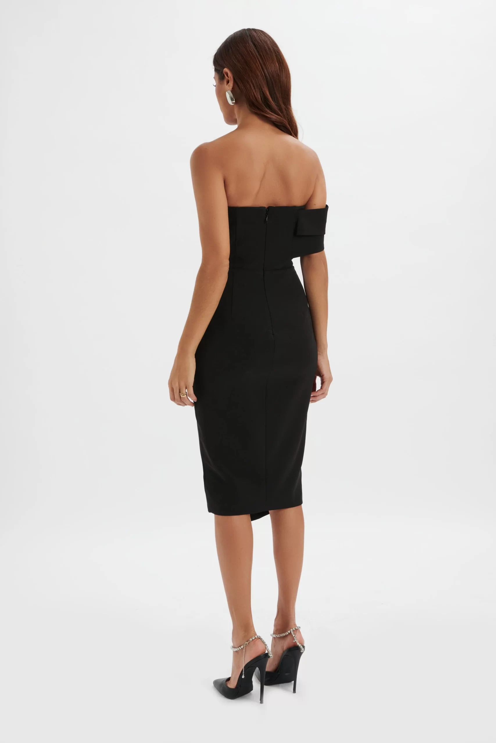 - Twisted Wrap One-Shoulder Knot Bardot Detail with Bandeau Pleating to the Front