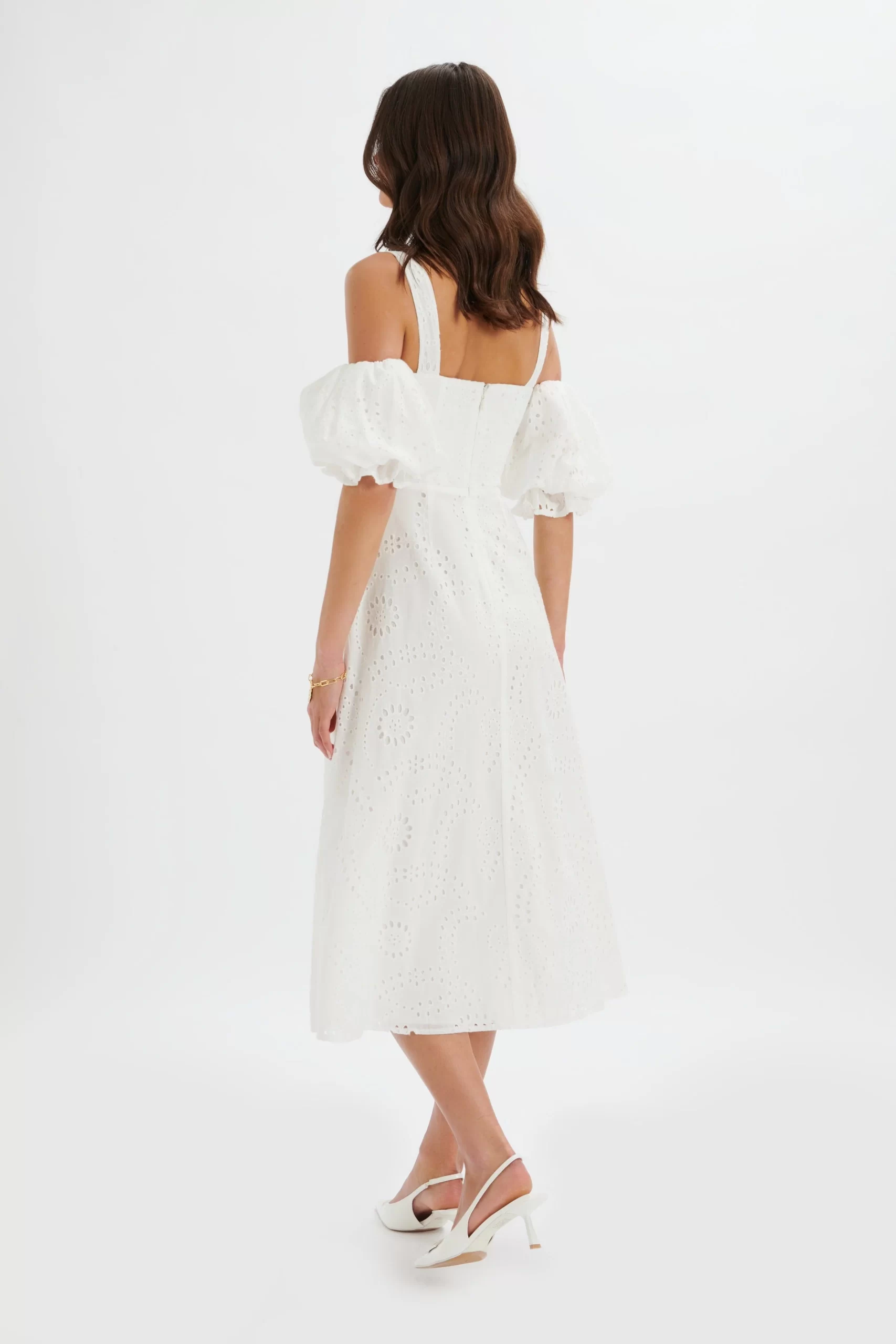 Lavish Alice Women’s Charli Off Shoulder Broderie Midi Dress In White