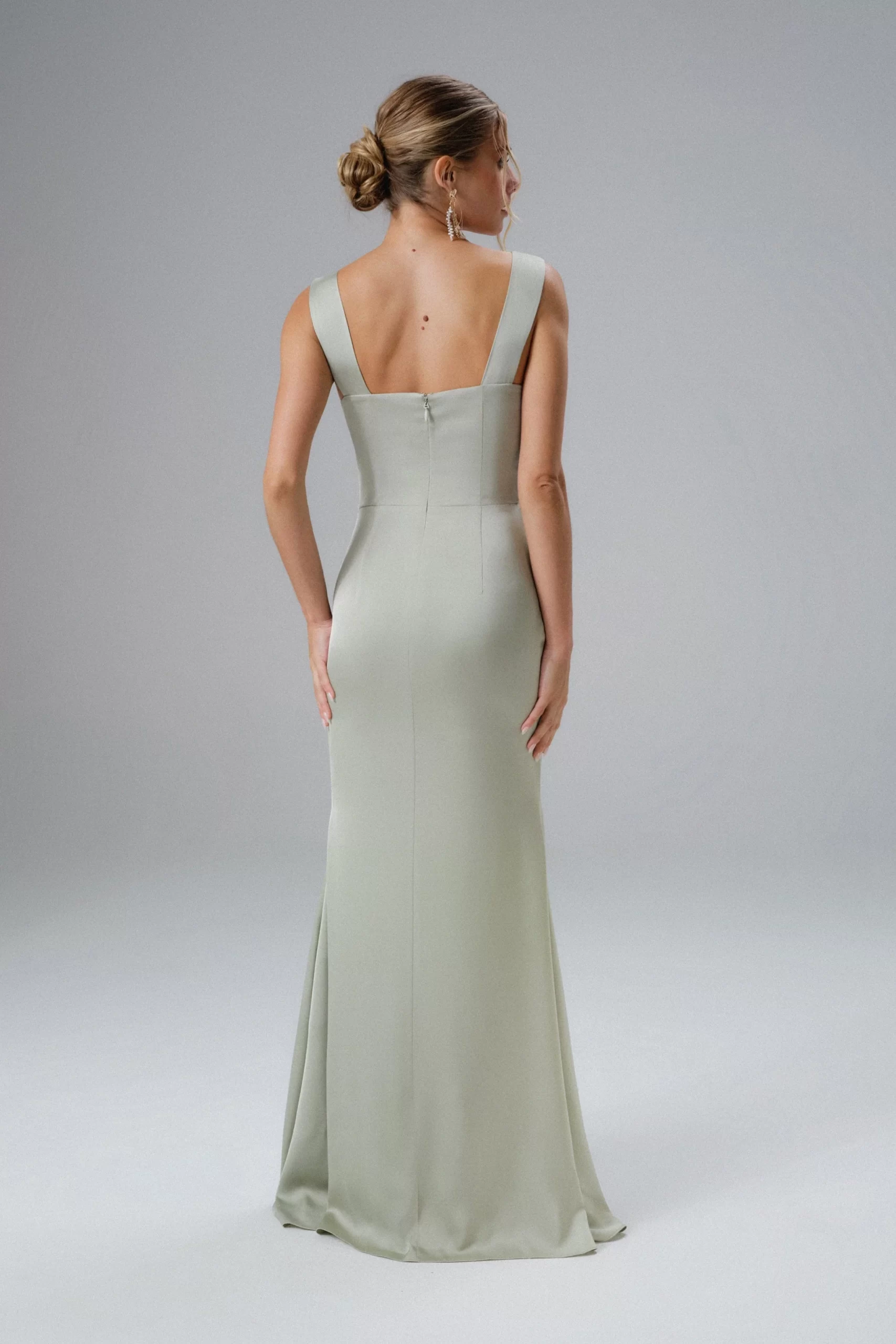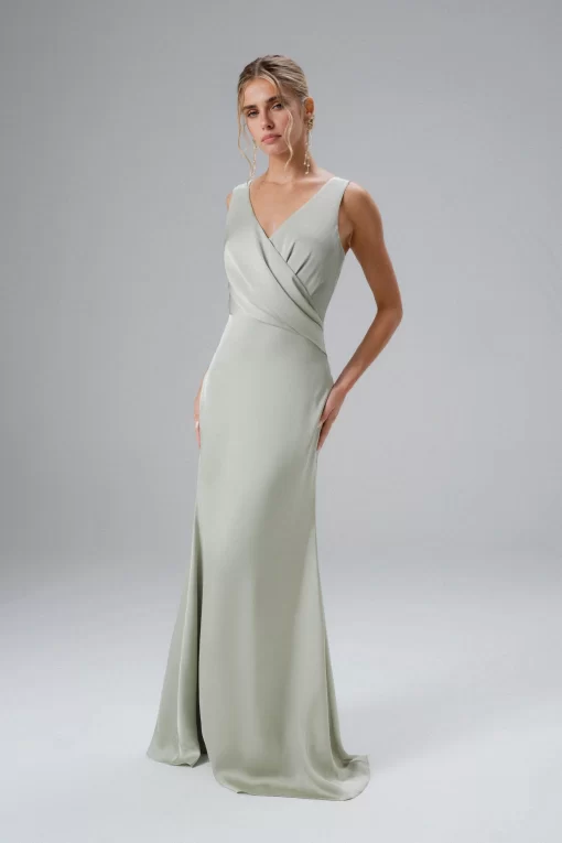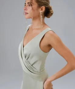 Expertly crafted and beautifully designed, the ELLE Draped Wrap Satin Maxi Dress in Sage Green is the perfect choice for any special occasion. Made with premium draped satin in a stunning sage green colour, this longline maxi dress features a flattering pleat wrap detail on the waist for a close to body fit. Ideal for bridesmaids or any moment that calls for a touch of luxury.