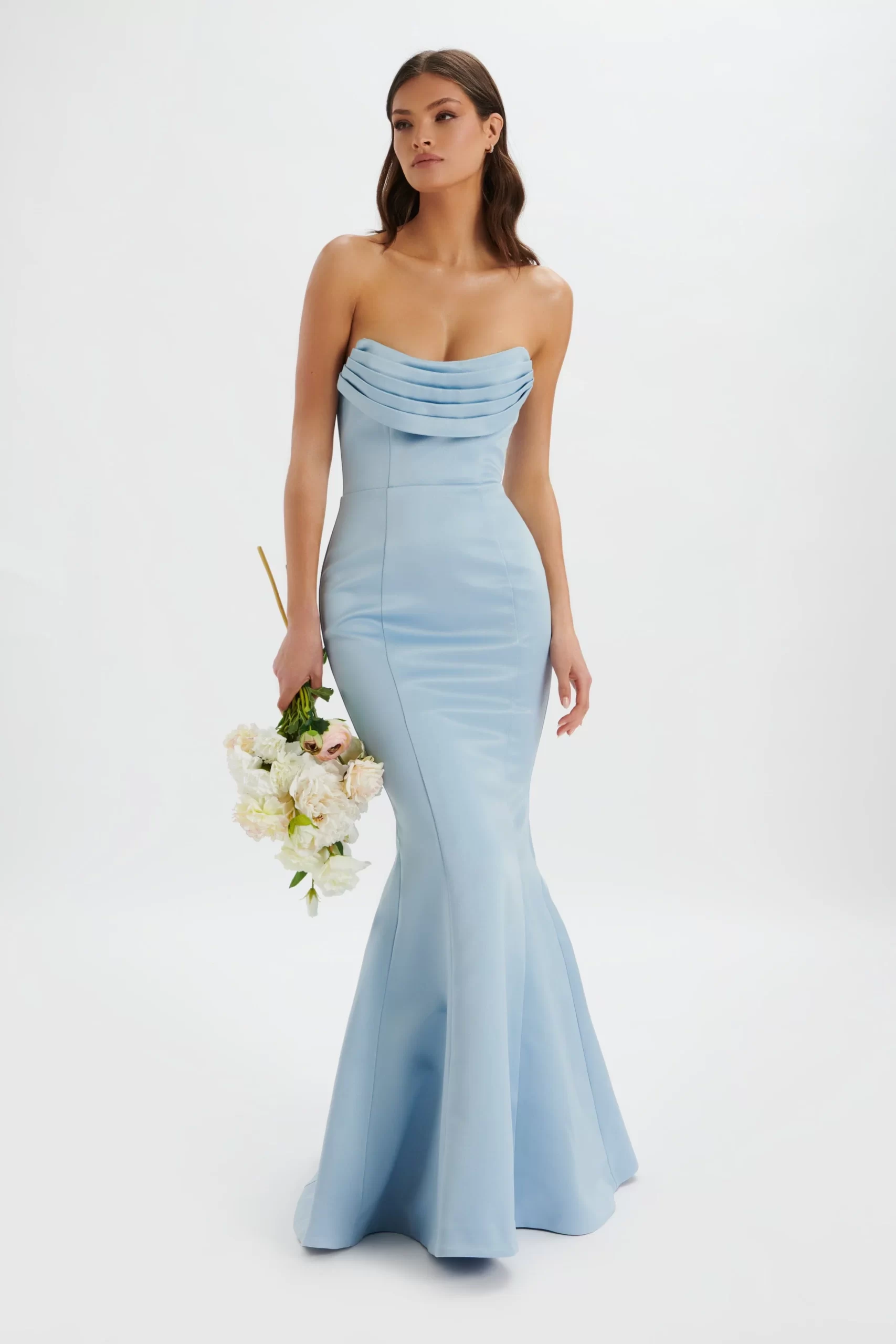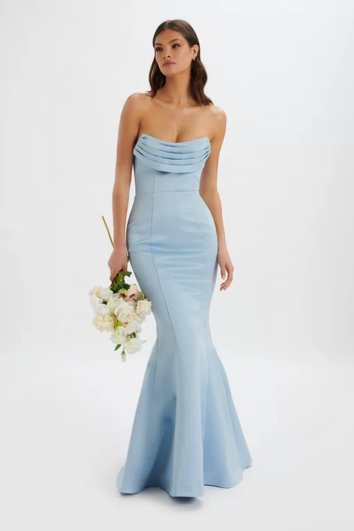 Channel your inner Cinderella and become the belle of the ball in our FREYA Bonded Satin Cowl Neck Maxi Dress in Dusty Blue. Simply elegant, the maxi length elongates your silhouette whilst a carefully crafted pleated neckline adds a touch of femininity.