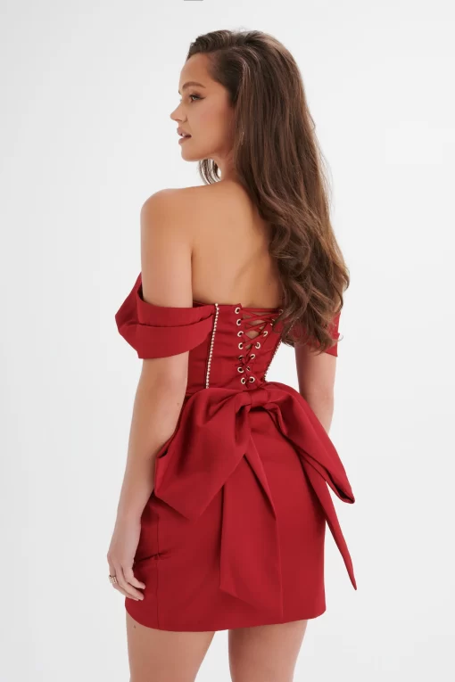 Lavish Alice Women’s Georgie Satin Off Shoulder Lace Up Mini Dress In Burgundy