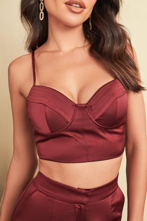 This IRIS luxe satin bralette is perfect for any date in your calendar. With elegant pleat detailing and a sweetheart neckline, style with the matching trousers or your favourite pair of jeans for a romantic autumn winter look.