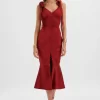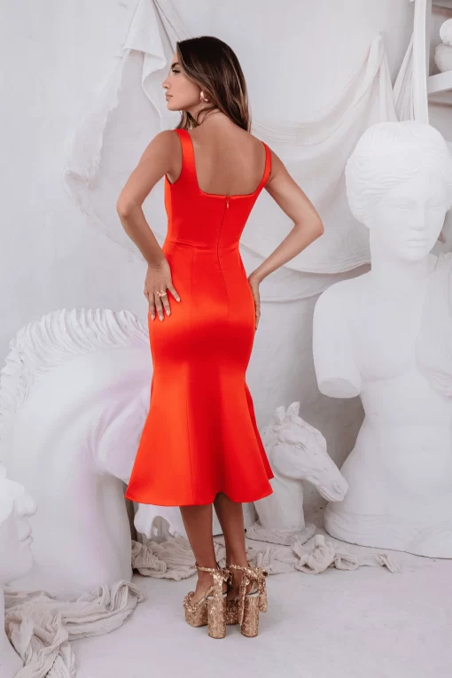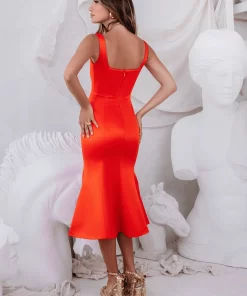 Lavish Alice Women’s Lainey Stitch Detail Midi Slip Dress In Coral Red