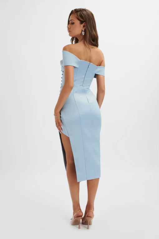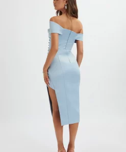 Lavish Alice Women’s Lucille Bardot Bandeau Pleated Midi Dress In Cornflower Blue