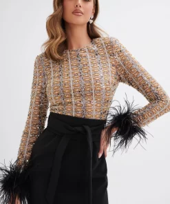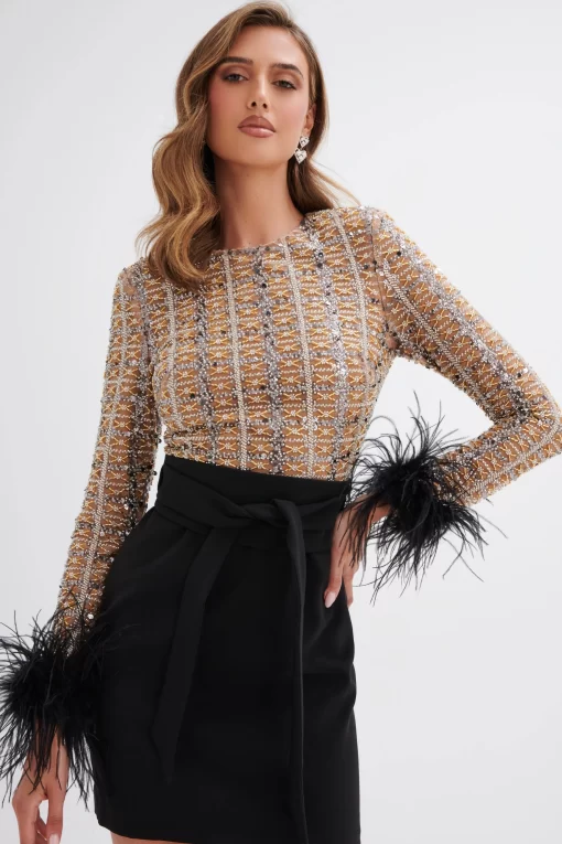 - Mixed Sequin Embellished and Embroidered Sheer Upper Body- 100% Polyester