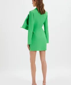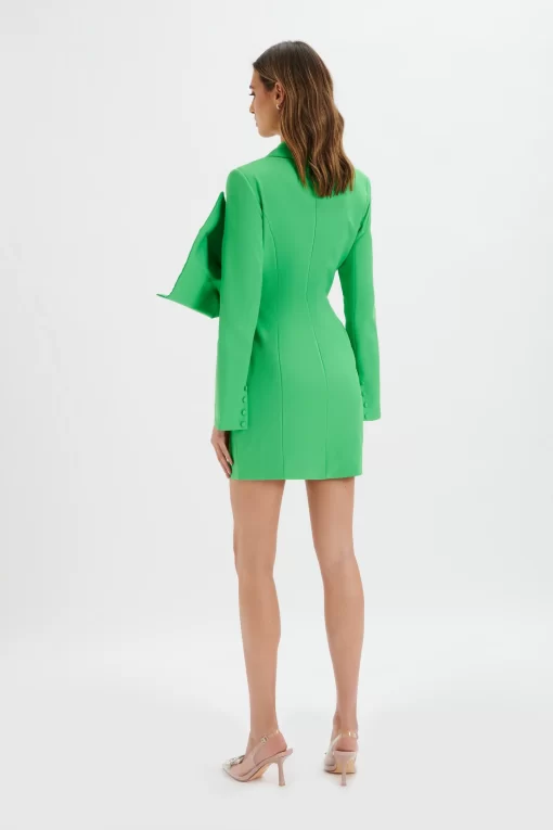 Elevate your style with the ROSALIE Bow Detail Mini Blazer Dress. Crafted from premium woven fabric in a stunning verdant green, this mini dress makes a statement with a large, eye-catching adornment bow in a bright green hue. Perfect for extravagant events or summer soirees, its vibrant pop of colour is sure to turn heads.