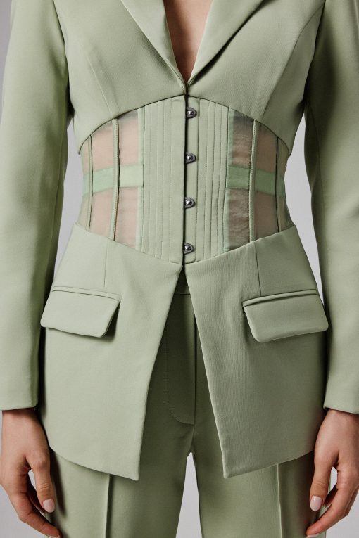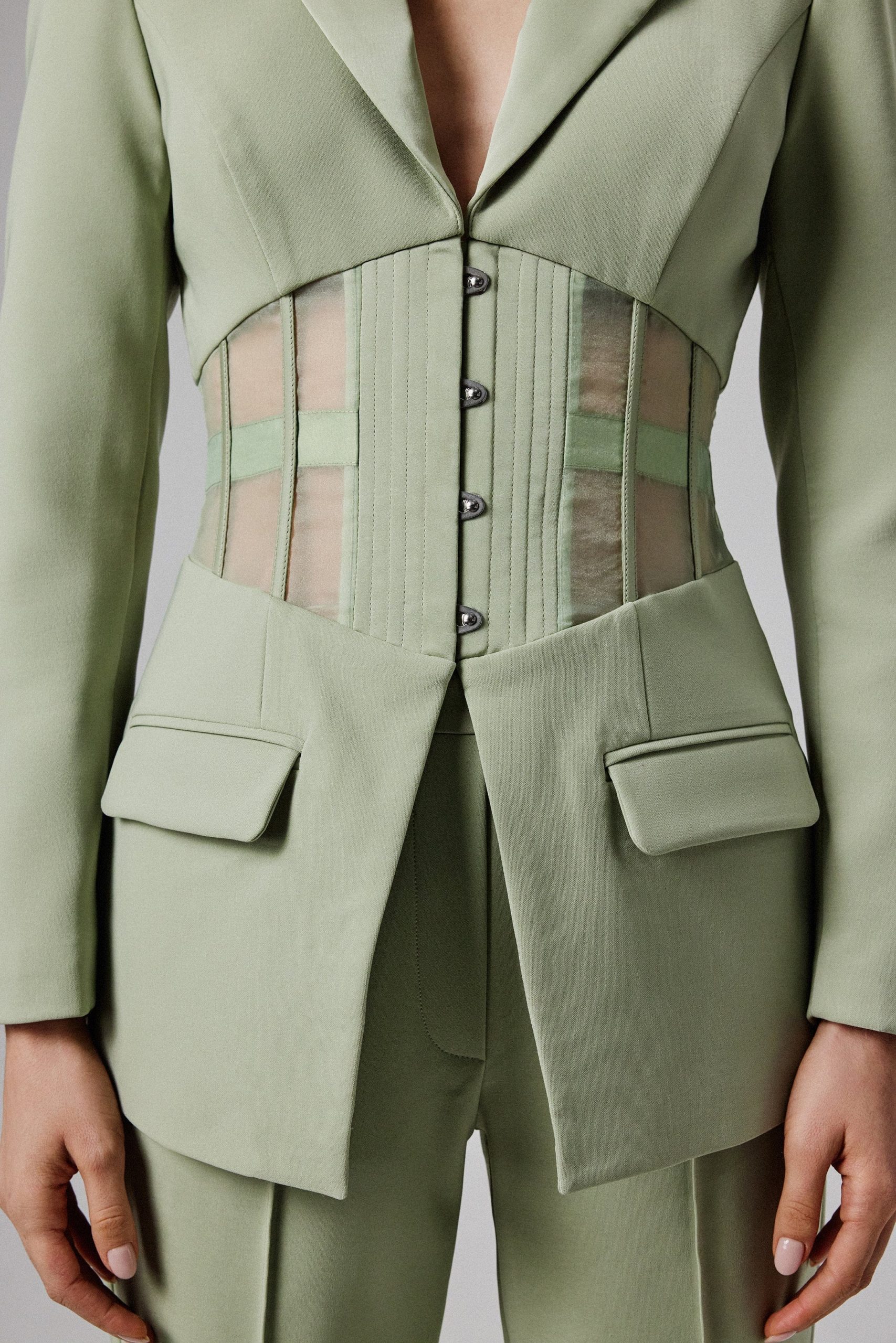 Lavish Alice Women’s Rosie Sheer Satin Mix Corset Blazer In Sage Green