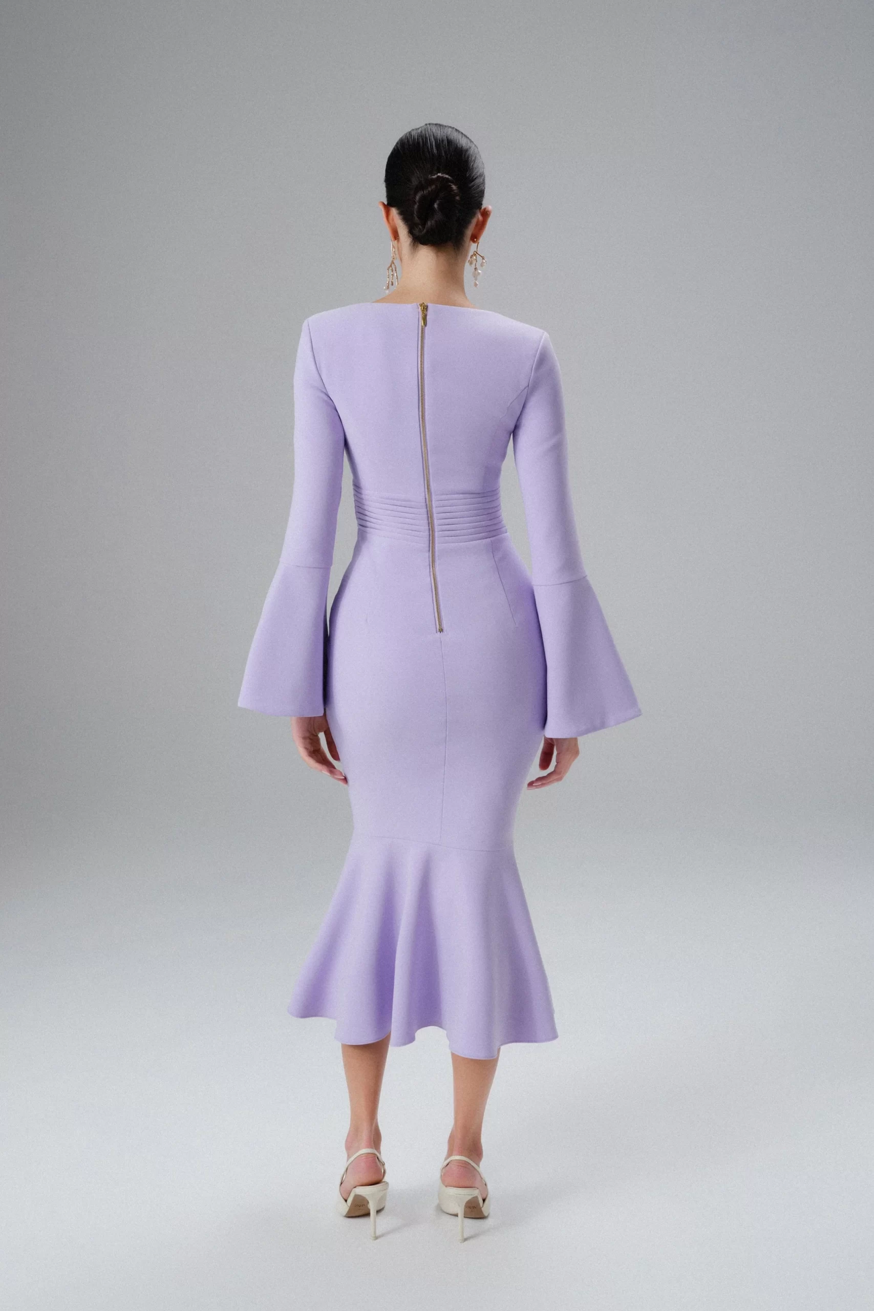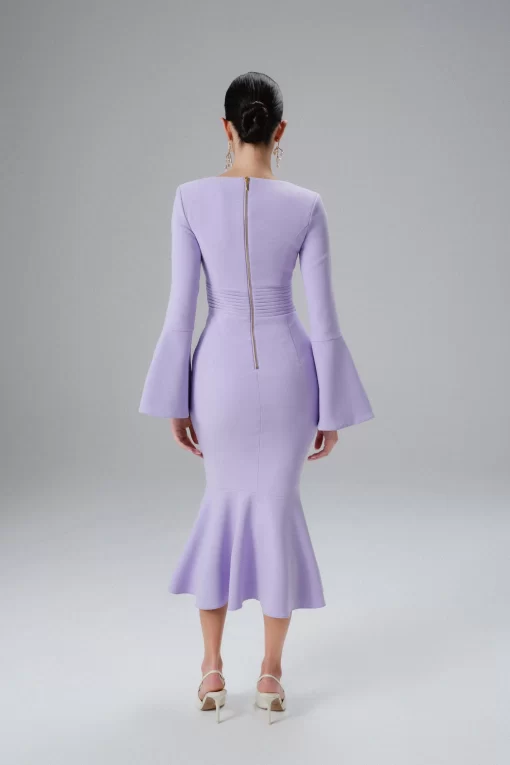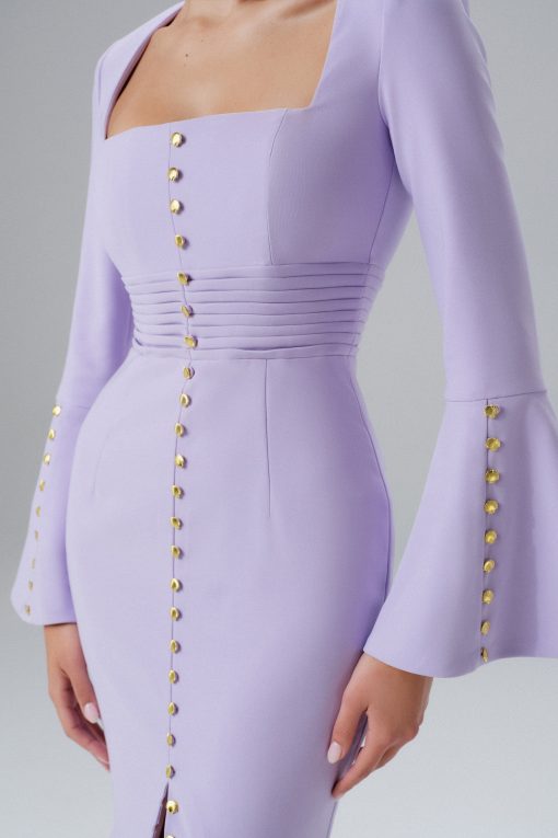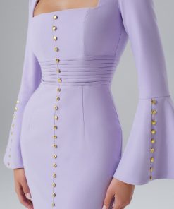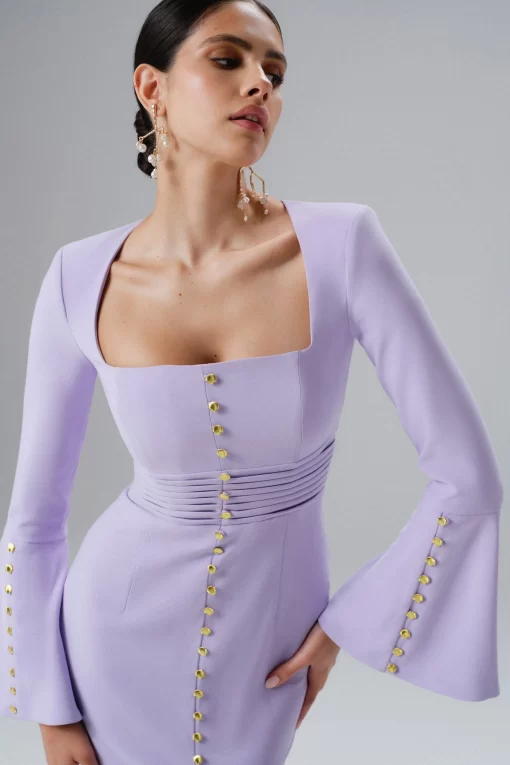 Lavish Alice Women’s Serena Fluted Sleeve Micro Shell Button Midi Dress In Purple