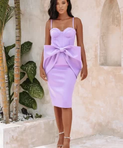 Lavish Alice Women’s Shiloh Extreme Bow Corset Detail Midi Dress In Lavender Satin