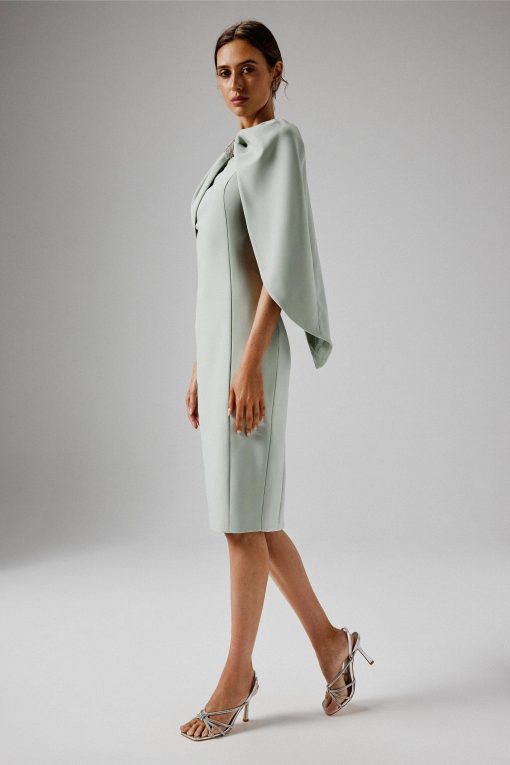 Lavish Alice Women’s Tina One Shoulder Embellished Bow Cape Midi Dress In Sage Green